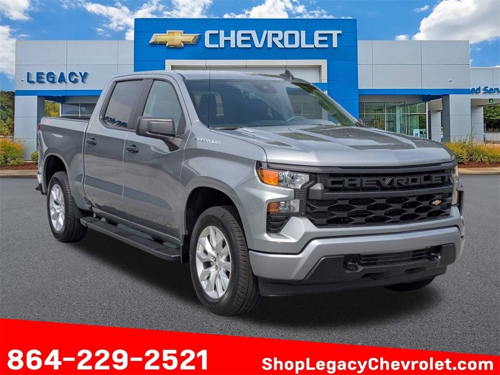 Sterling Gray Metallic 2025 Chevrolet Silverado 1500 Custom 4WD 8-Speed Automatic 2.7L I4 Turbocharged DOHC 16V LEV3-SULEV30 310hp Price includes: $1000 - Chevrolet Select Market Bonus Cash. Exp. 11/03/2025 $1000 - GM Bonus Cash. Exp. 11/03/2025 $3000 - Chevrolet Consumer Cash Program. Exp. 11/03/2025