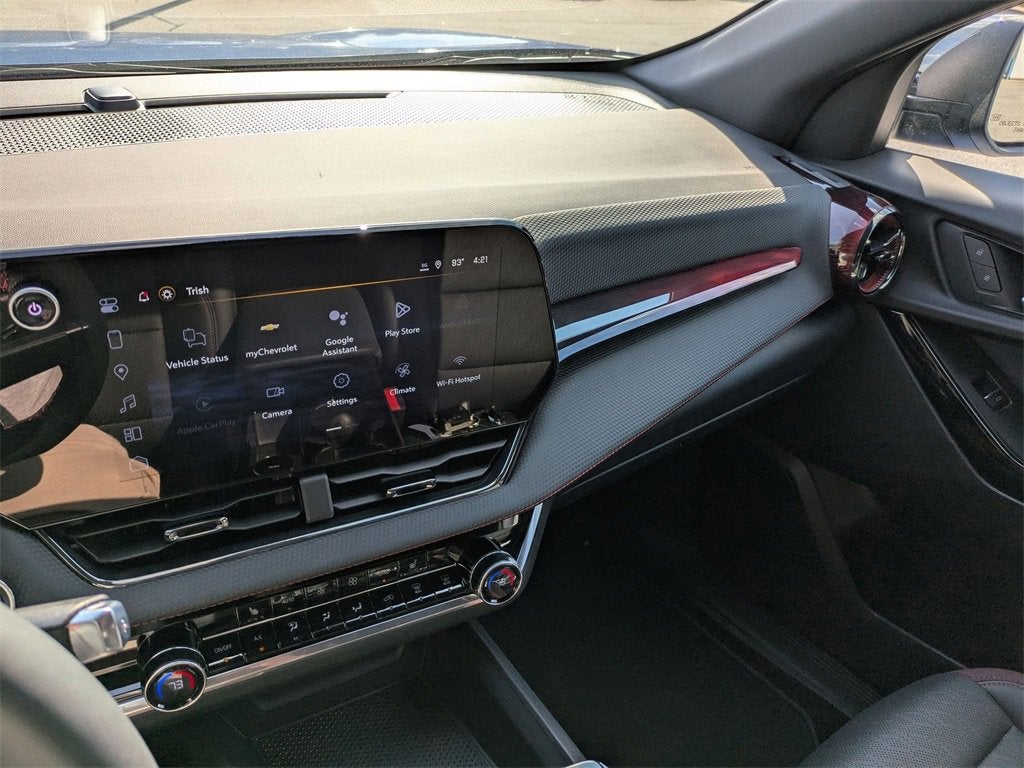 Clean CARFAX. CARFAX One-Owner. Certified. 26/28 City/Highway MPG Equinox RS, 4D Sport Utility, 1.5L DOHC, CVT, FWD, Reef Blue Metallic, Black With Red Accents Premium Synthetic, 2-Way Power Driver Lumbar Control Seat Adjuster, 4-Wheel Disc Brakes, 5.81 Final Drive Axle Ratio, 6 Speakers, ABS brakes, Air Conditioning, All-Weather Floor Liners (LPO), Alloy wheels, AM/FM radio: SiriusXM, Auto High-beam Headlights, Automatic temperature control, Brake assist, Bumpers: body-color, Cargo Mat, Compass, Delay-off headlights, Driver 8-Way Power Seat Adjuster, Driver door bin, Driver vanity mirror, Dual front impact airbags, Dual front side impact airbags, Electronic Stability Control, Emergency communication system: OnStar and Chevrolet connected services capable, Evotex Seat Trim, Floor Liner Package (LPO), Four wheel independent suspension, Front anti-roll bar, Front Bucket Seats, Front Center Armrest, Front dual zone A/C, Front Passenger 4-Way Manual Seat Adjuster, Front reading lights, Fully automatic headlights, Garage door transmitter, Heated door mirrors, Heated Driver & Front Passenger Seats, Heated front seats, Illuminated entry, Low tire pressure warning, Navigation System, Occupant sensing airbag, Outside temperature display, Overhead airbag, Overhead console, Panic alarm, Passenger door bin, Passenger vanity mirror, Power door mirrors, Power driver seat, Power Liftgate, Power steering, Power windows, Preferred Equipment Group 1RS, Premium audio system: Chevrolet Infotainment 3, Radio data system, Radio: 11.3 Diagonal Advanced Color LCD Display, Rain sensing wipers, Rear anti-roll bar, Rear reading lights, Rear seat center armrest, Rear window defroster, Rear window wiper, Remote keyless entry, Second Row All-Weather Mat (LPO), Security system, SiriusXM w/360L Trial Subscription, Speed control, Speed-sensing steering, Split folding rear seat, Spoiler, Sport steering wheel, Steering wheel mounted audio controls, Tachometer, Telescoping steering wheel, Tilt steering wheel, Traction control, Trip computer, Variably intermittent wipers, Wheels: 19 Carbon Flash Metallic Aluminum.