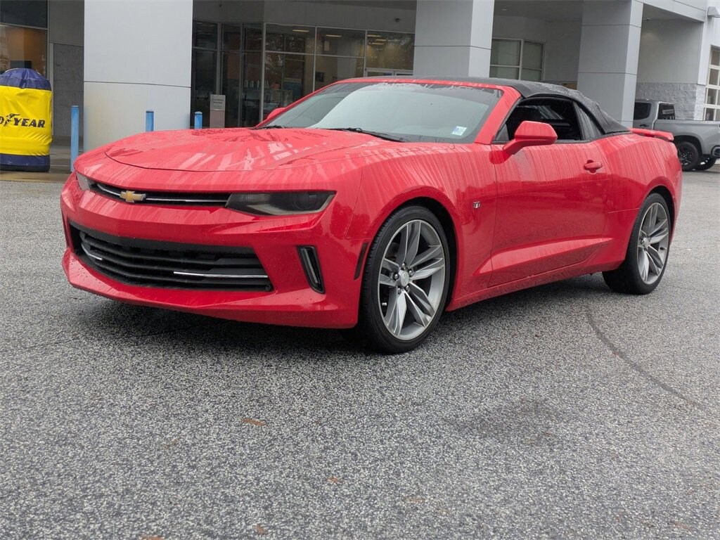 19/28 City/Highway MPG Camaro 1LT, 2D Convertible, 3.6L V6 DI, 8-Speed Automatic, RWD, Red Hot, Jet Black Cloth, 18 Silver-Painted Aluminum Wheels, 2 USB Ports & Auxiliary Input Jack, 4-Wheel Disc Brakes, 6 Speakers, 6-Speaker Audio System Feature, ABS brakes, Air Conditioning, Alloy wheels, AM/FM radio: SiriusXM, Apple CarPlay/Android Auto, Automatic temperature control, Brake assist, Bumpers: body-color, Cloth Seat Trim, Compass, Convertible roof lining, Delay-off headlights, Driver door bin, Driver vanity mirror, Dual front impact airbags, Dual front side impact airbags, Electronic Stability Control, Emergency communication system, Exterior Parking Camera Rear, Four wheel independent suspension, Front anti-roll bar, Front Bucket Seats, Front Center Armrest, Front fog lights, Front License Plate Bracket, Front reading lights, Front Sport Bucket Seats, Fully automatic headlights, Glass rear window, High-Intensity Discharge Headlamps, Illuminated entry, Knee airbag, Leather Shift Knob, Low tire pressure warning, Occupant sensing airbag, Panic alarm, Passenger door bin, Passenger vanity mirror, Power convertible roof, Power door mirrors, Power driver seat, Power passenger seat, Power steering, Power windows, Premium audio system: Chevrolet MyLink, Radio data system, Radio: AM/FM w/Chevrolet MyLink, Rear anti-roll bar, Rear window defroster, Remote keyless entry, RS Package, Security system, SiriusXM Satellite Radio, Speed control, Speed-sensing steering, Spoiler, Steering wheel mounted audio controls, Tachometer, Telescoping steering wheel, Tilt steering wheel, Tire Inflation Kit, Traction control, Trip computer, Variably intermittent wipers, Voltmeter, Wheels: 20 5-Split Spoke Machined-Face Aluminum.